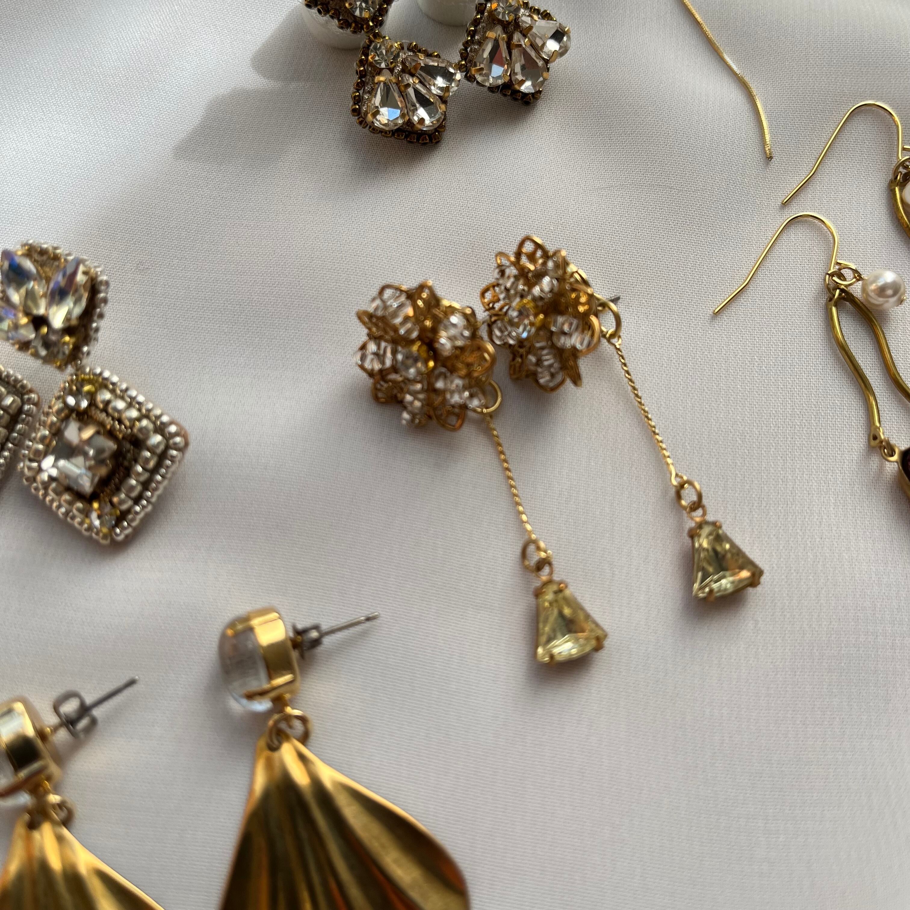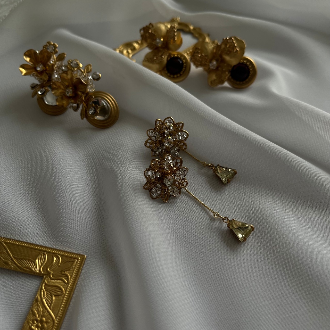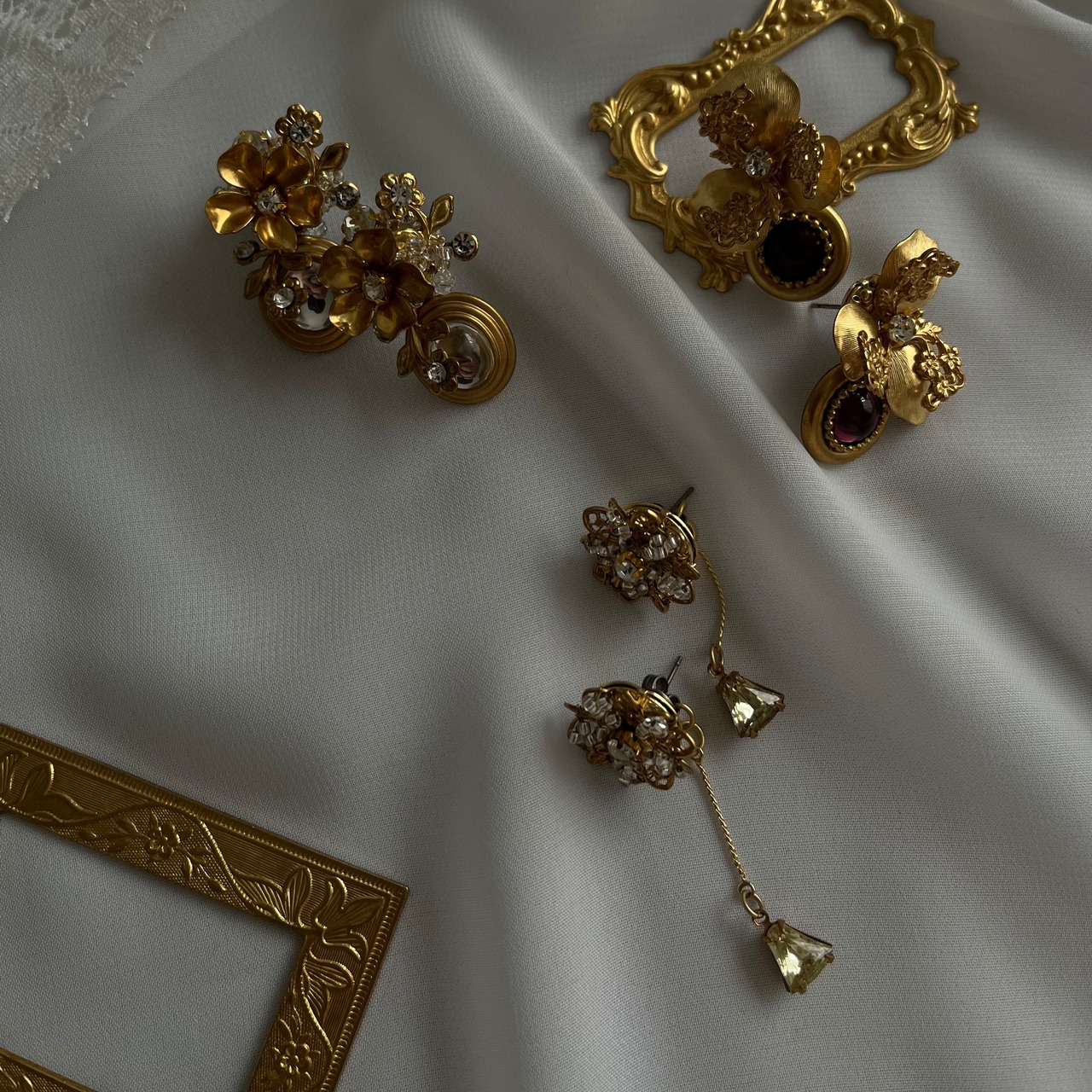 素材:USA真鍮、ガラスストーン、ヴィンテージクリスタルガラス等。