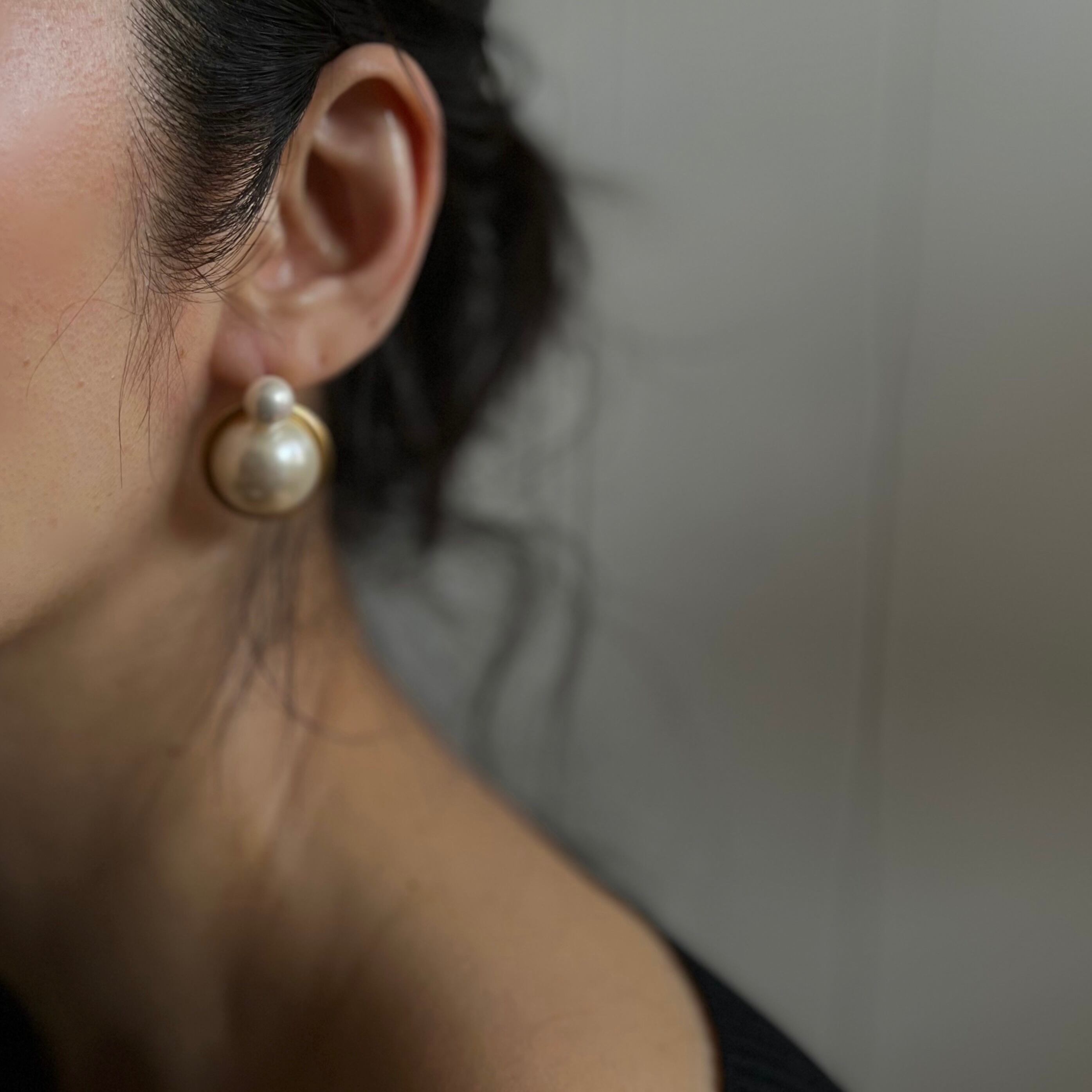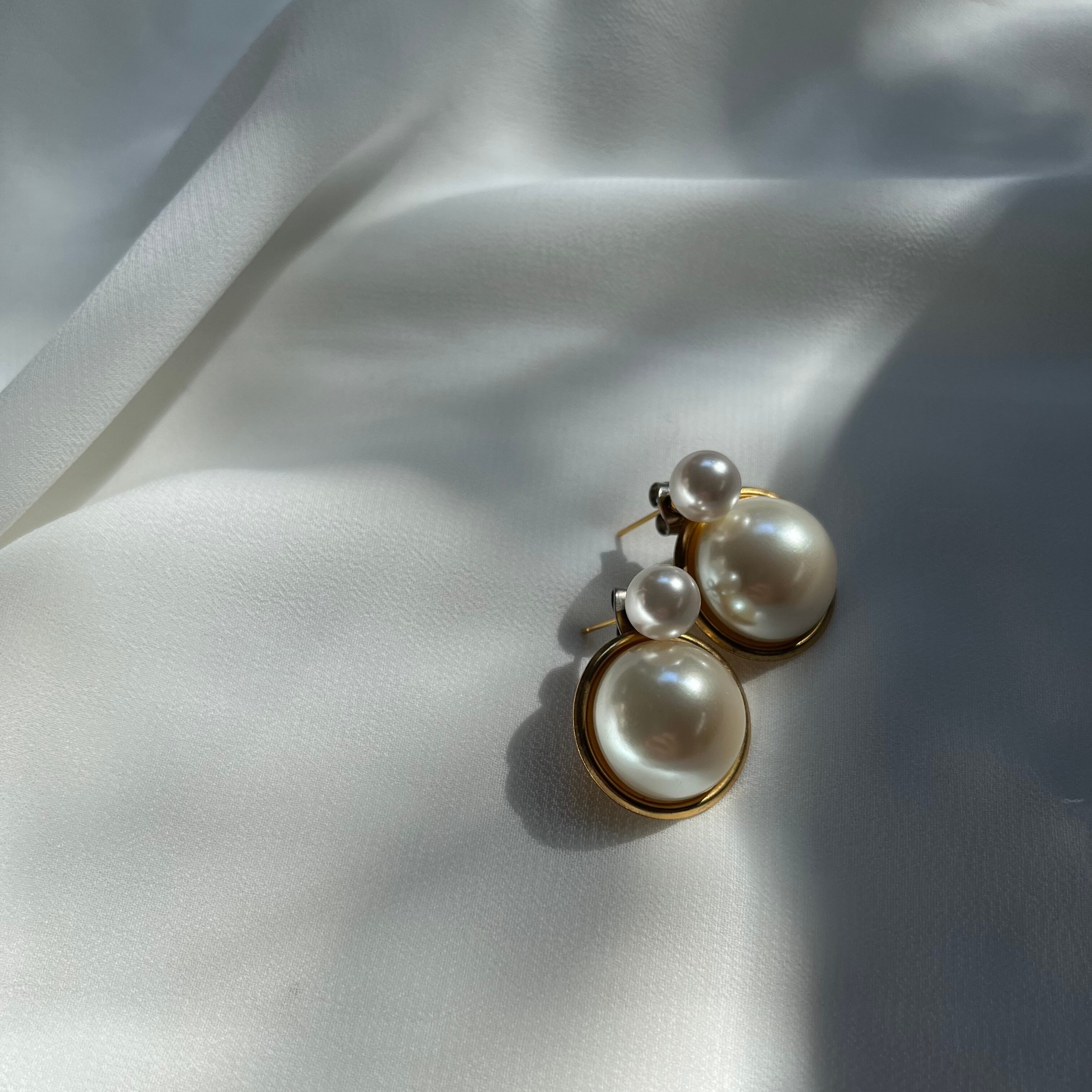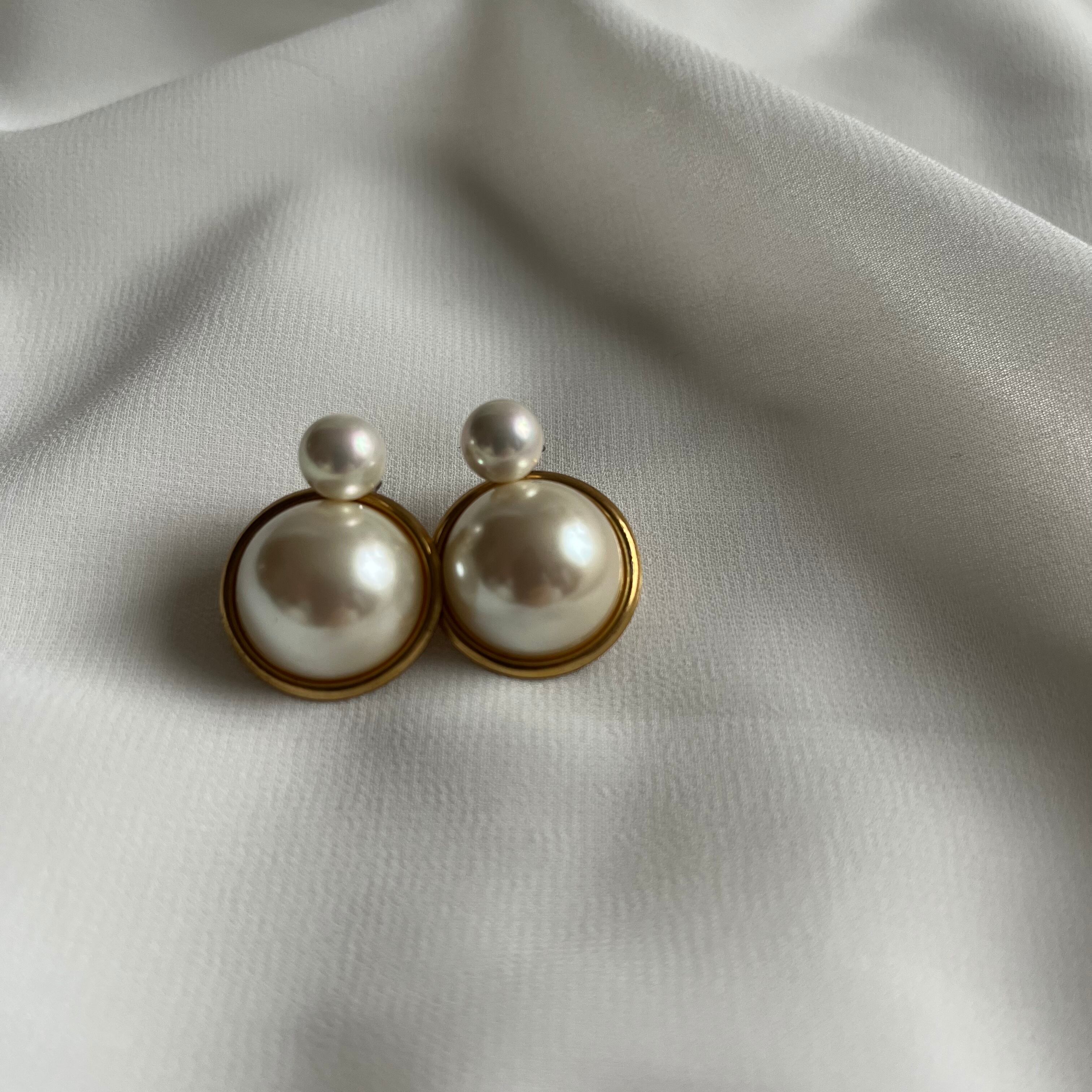 人気の一粒貝パールとヴィンテージパールを合わせたピアス再販です。