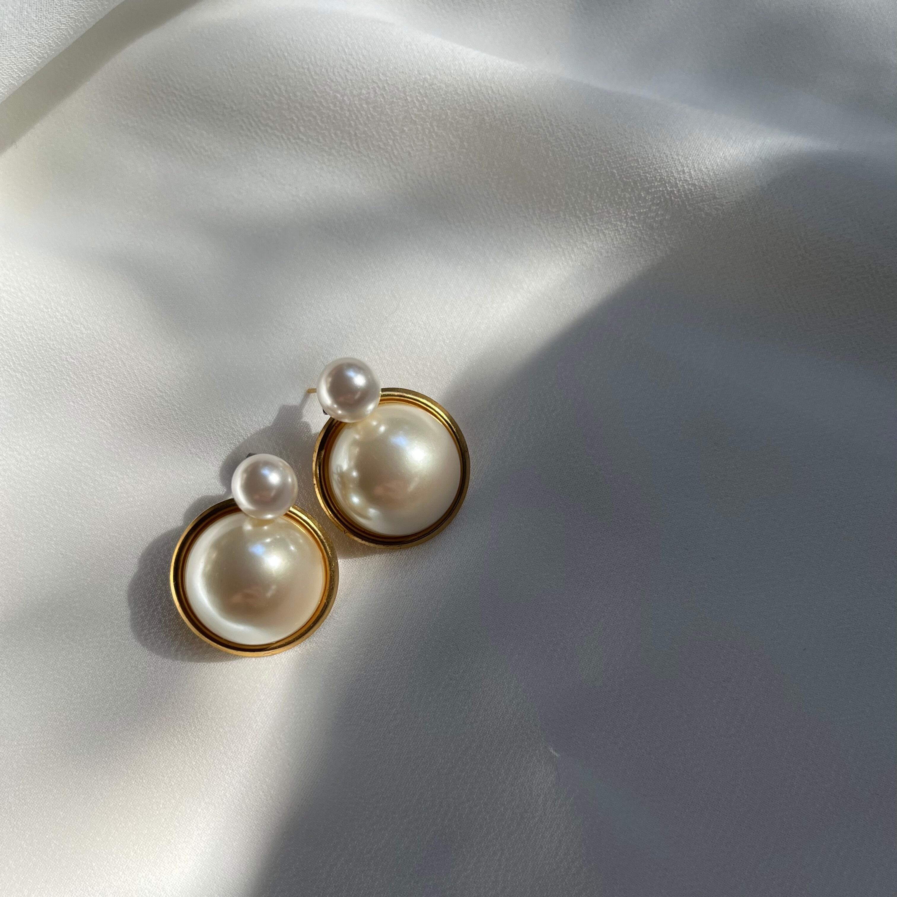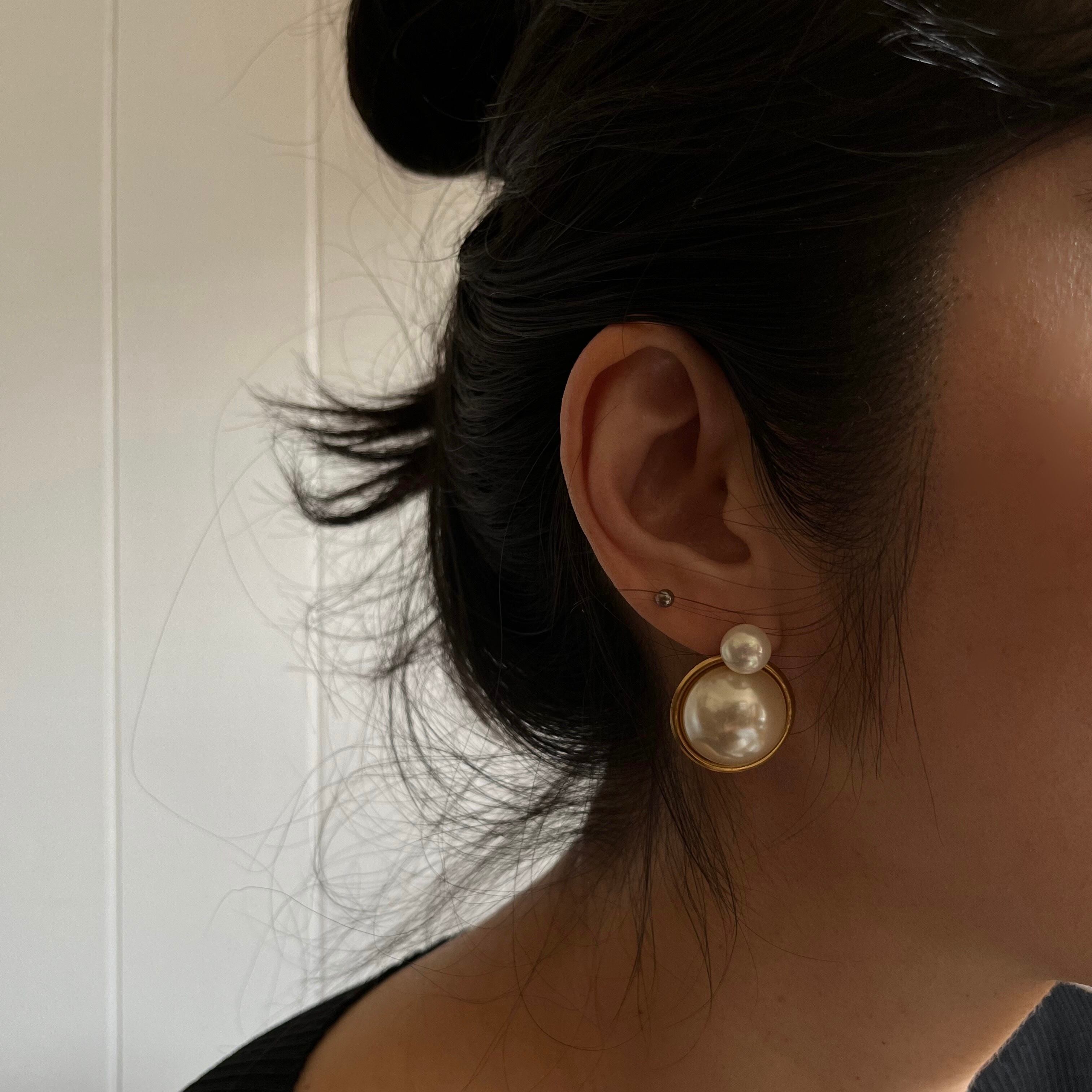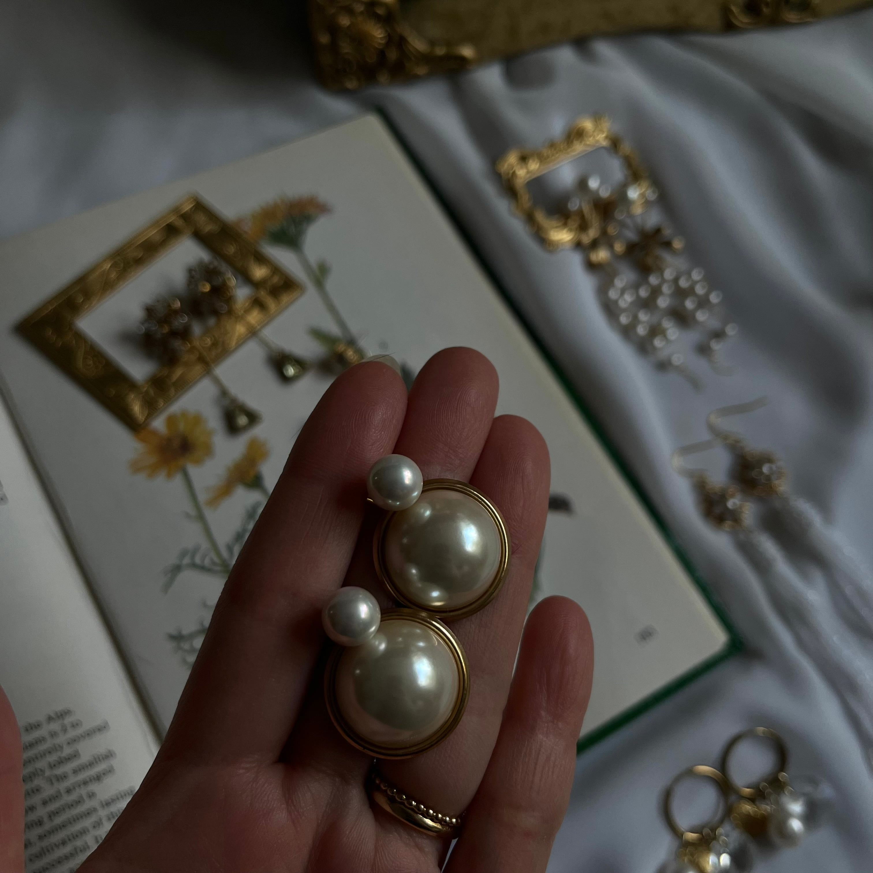 人気の一粒貝パールとヴィンテージパールを合わせたピアス再販です。
