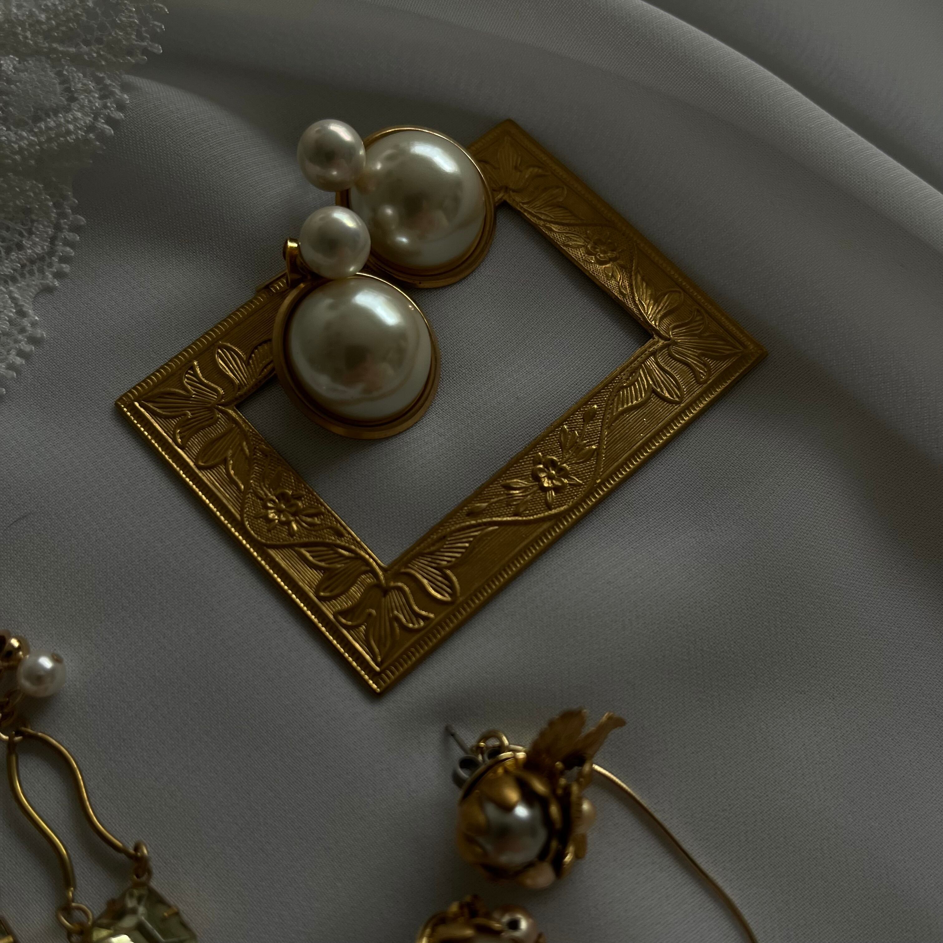 ぽってりとした高さがあるヴィンテージパールは、真鍮製のセッティングに合わせ