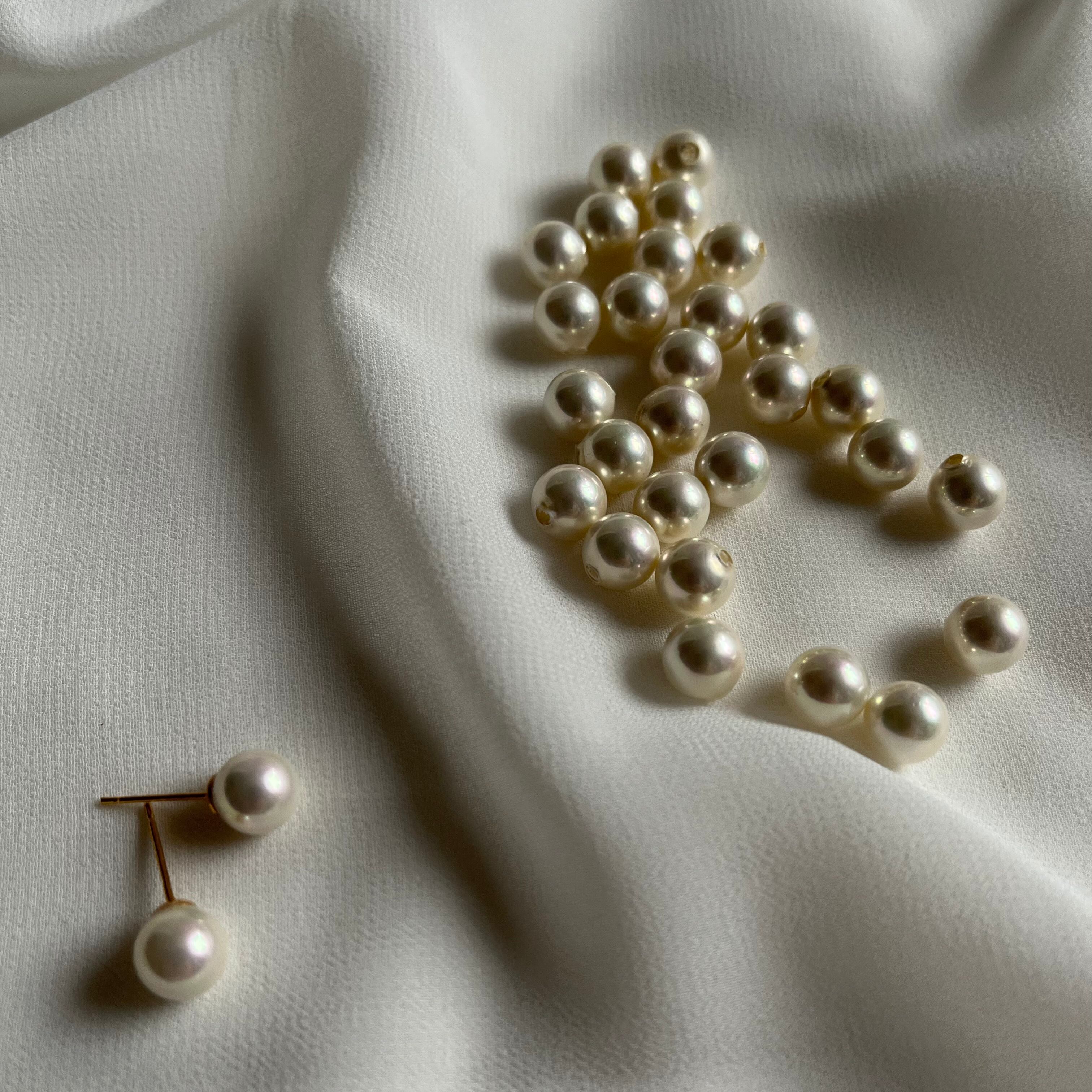 約8mmサイズの貝パールは表面の照りと艶感が美しいです。