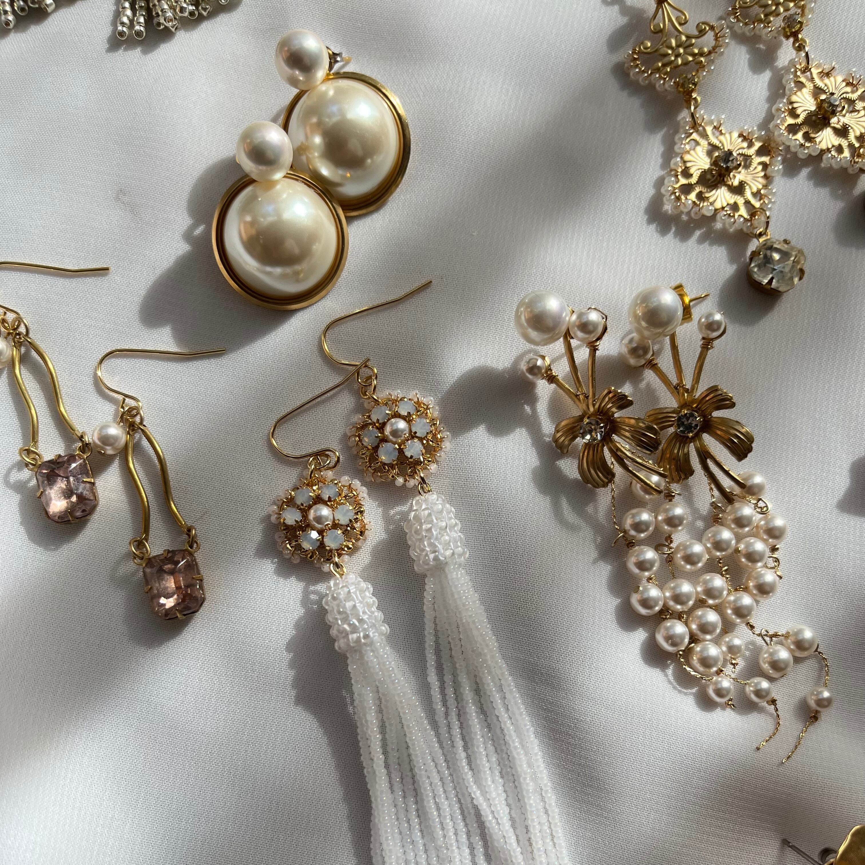 再販 Shell pearls × vintage pearl parts 2way ピアス