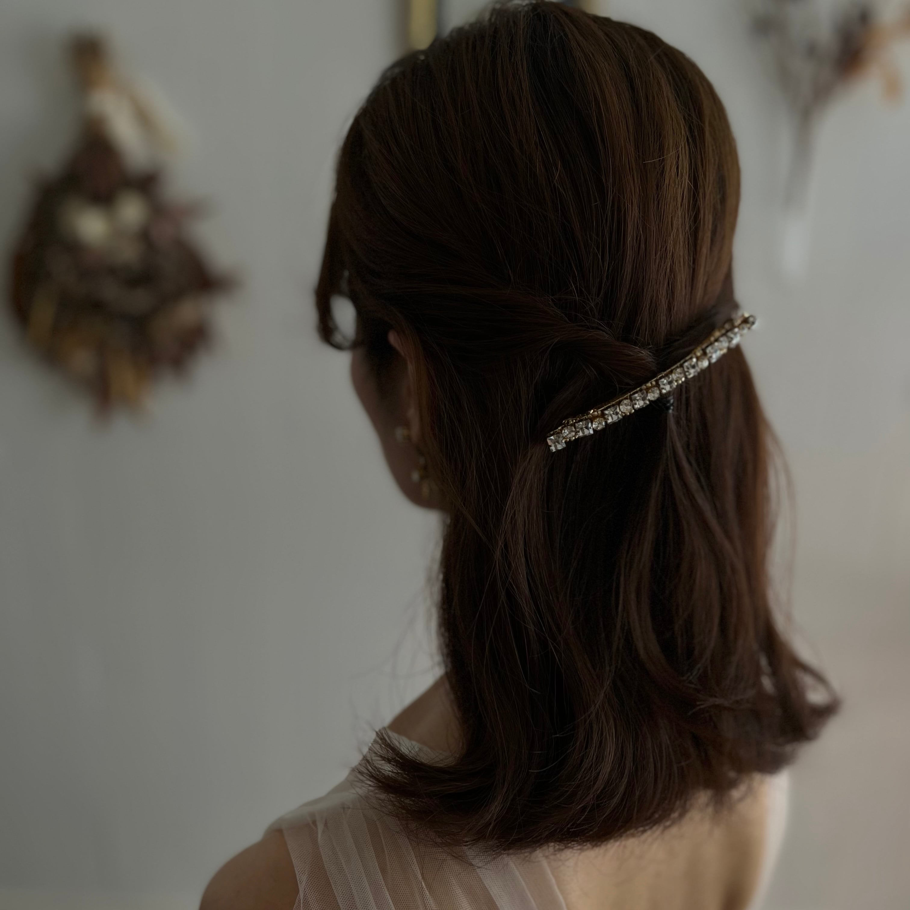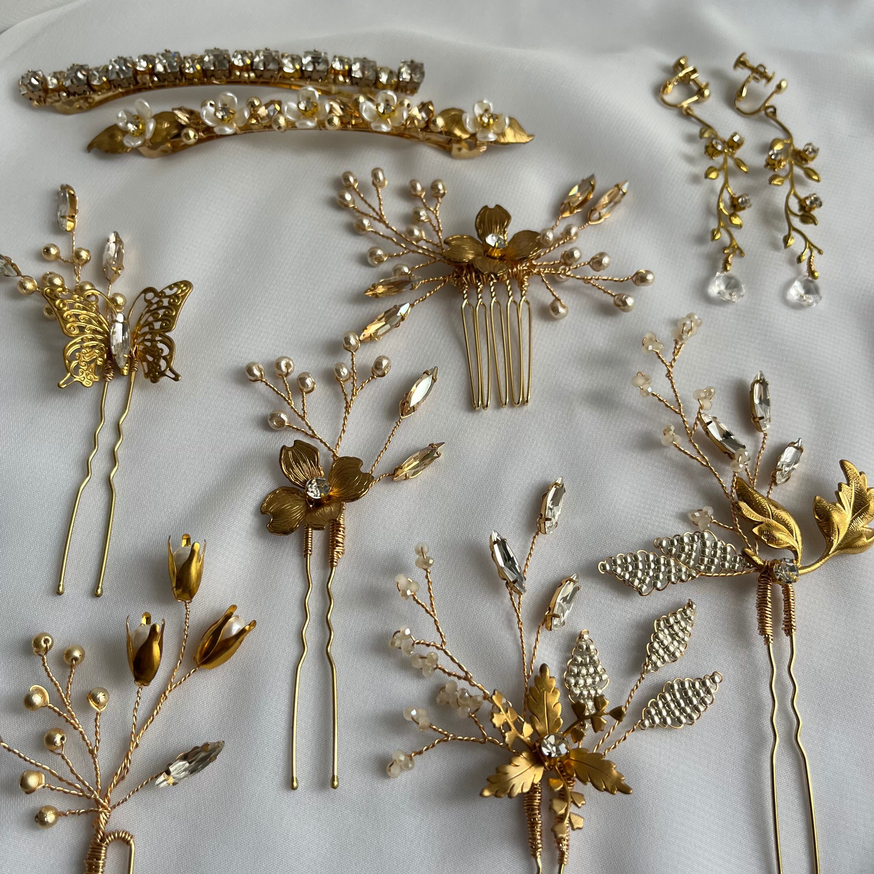 華奢なデザインは女性らしい印象です。日常使いはもちろん、特別な日にも華を添えてくれるアクセサリー。髪のアクセントとして、前撮りやカジュアルウェディング、お呼ばれ結婚式などにもオススメです。