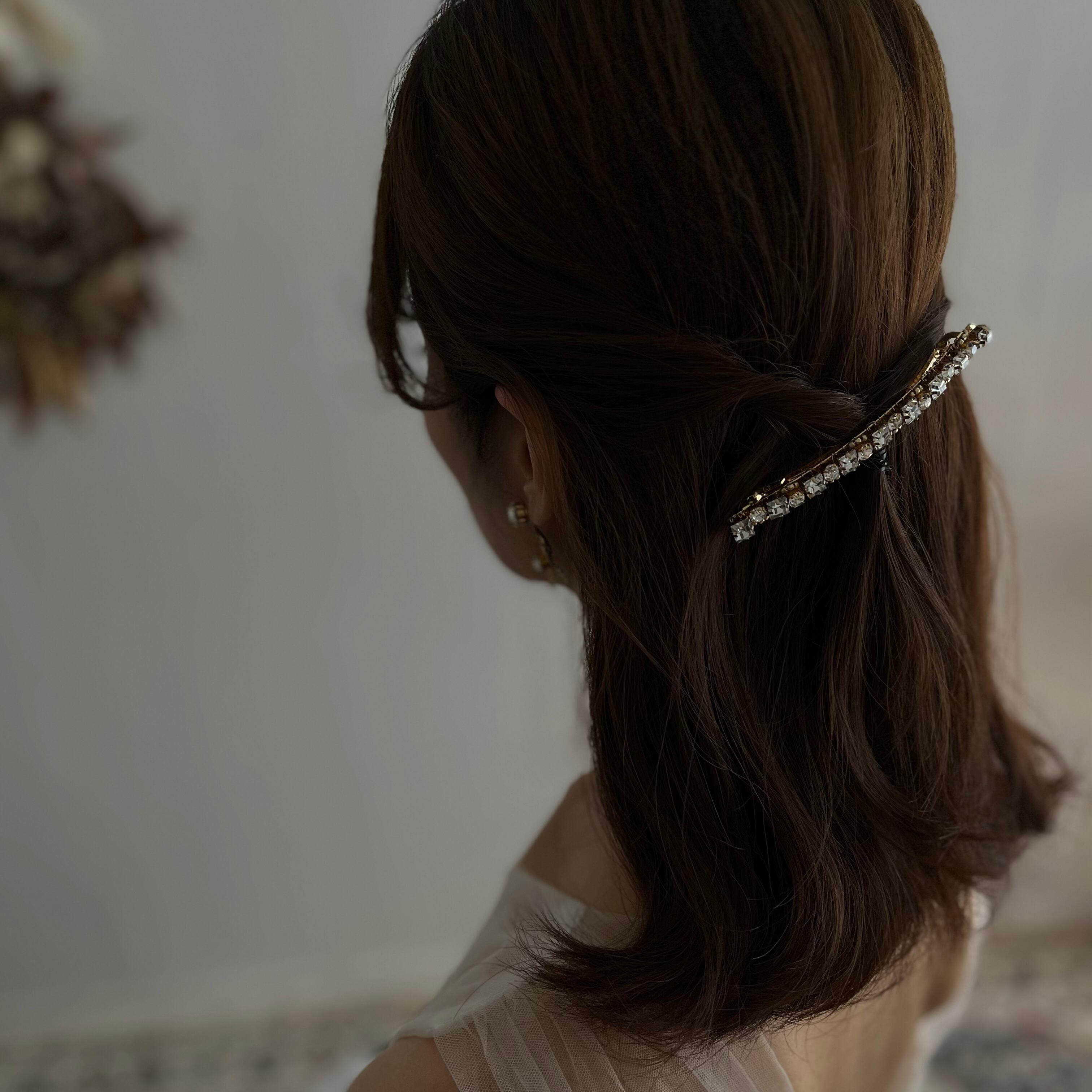 ハーフアップ、編み込みスタイルにお付けいただいても素敵です。
