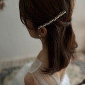 キラキラ輝くクリスタルグラスストーンが印象的な、ロングバレッタ。ヘアアレンジを華やかに演出してくれるアイテムです。全体に散りばめられたストーンが、光を反射してより輝きを増し、ヘアスタイルにエレガントなアクセントを加えます。シンプルなデザインなので、どんなヘアスタイルにもマッチし、ドレスアップや普段使いにもおすすめです。