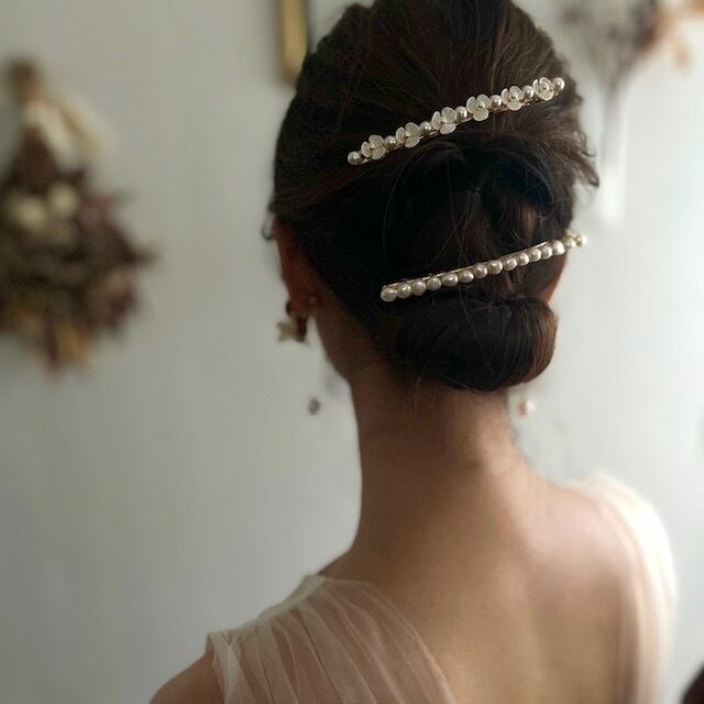 ハーフアップ、編み込みスタイルにお付けいただいても素敵です。