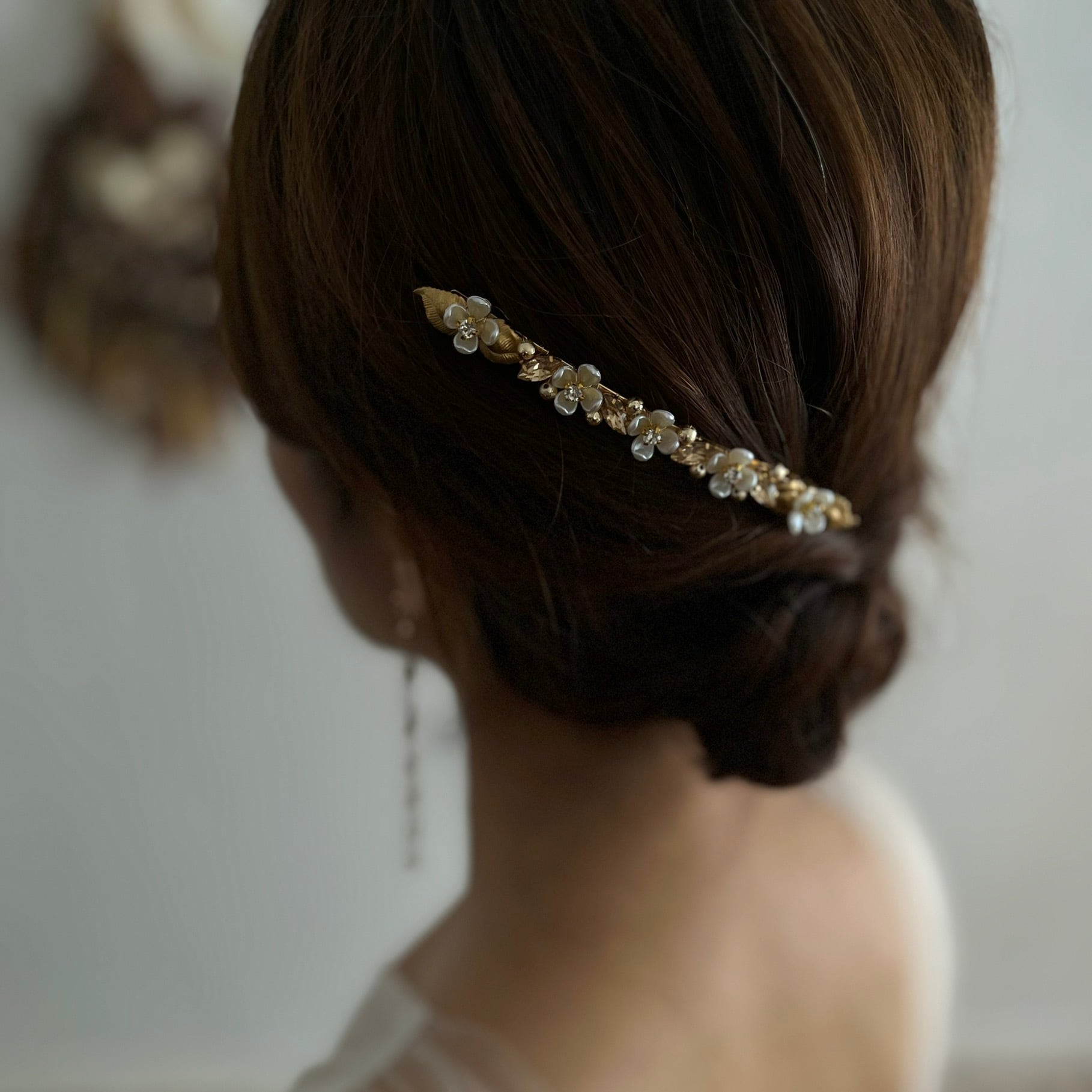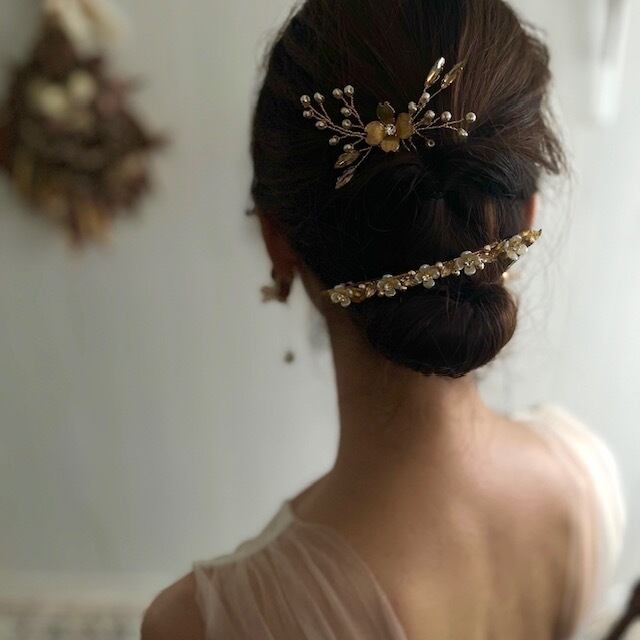 ハーフアップ、編み込みスタイルにお付けいただいても素敵です。
