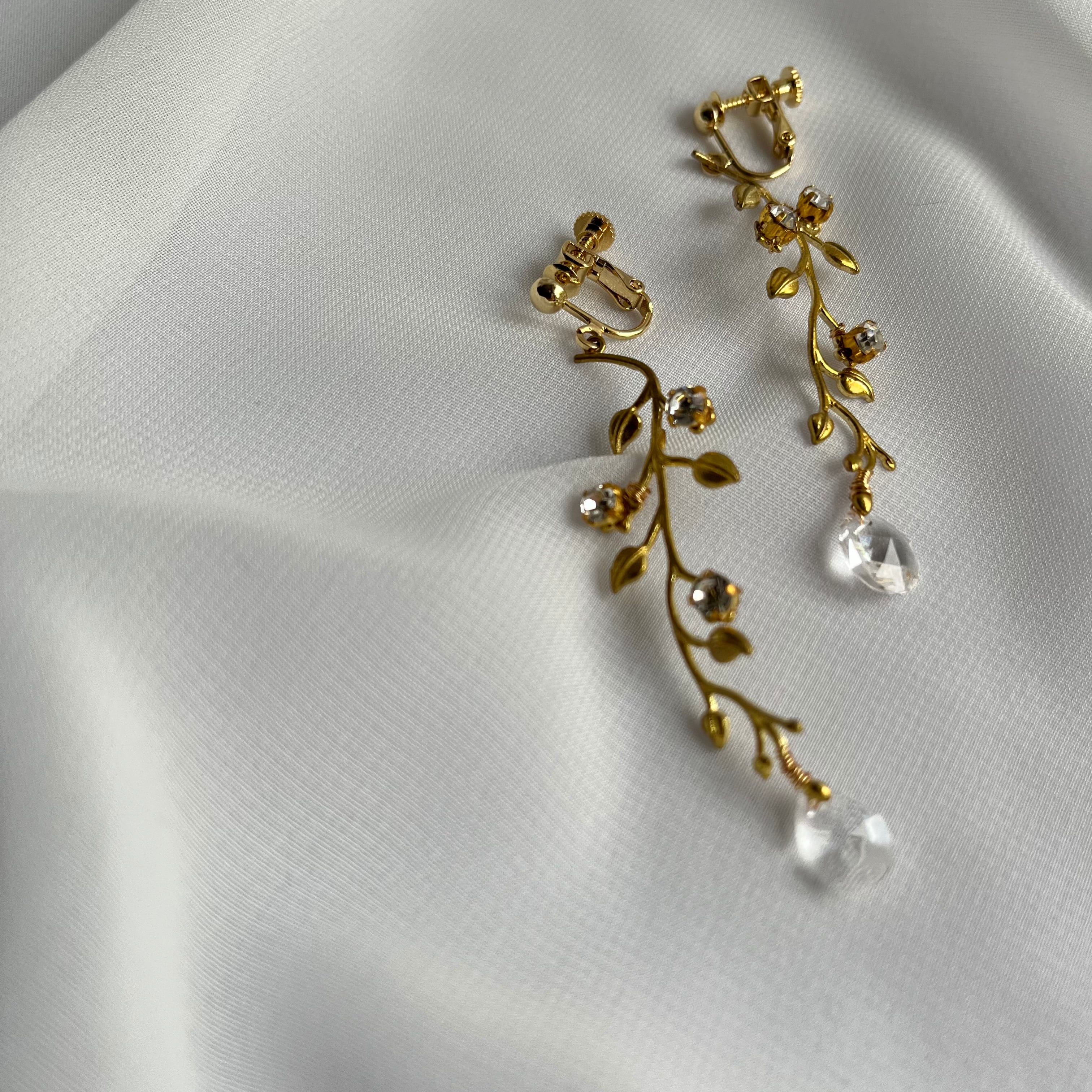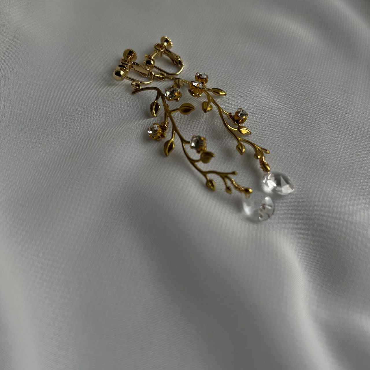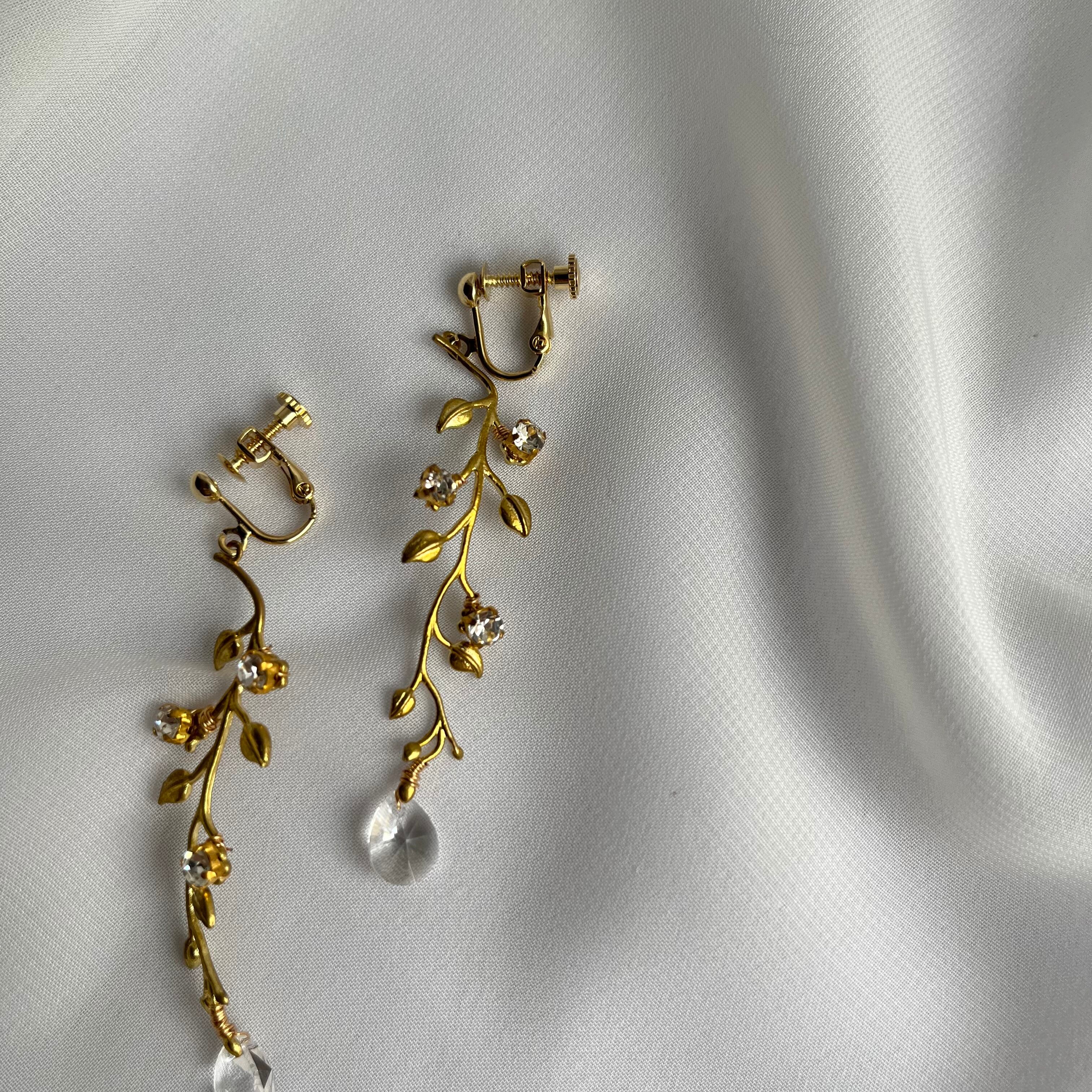 真鍮の小枝にキラキラと輝くクリスタルガラスストーンをあしらったピアス(イヤリング)。